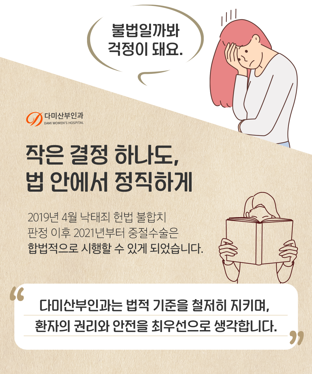 임신중절수술합법 시대일수록 이런 기본기가 환자의 신뢰가 됩니다.