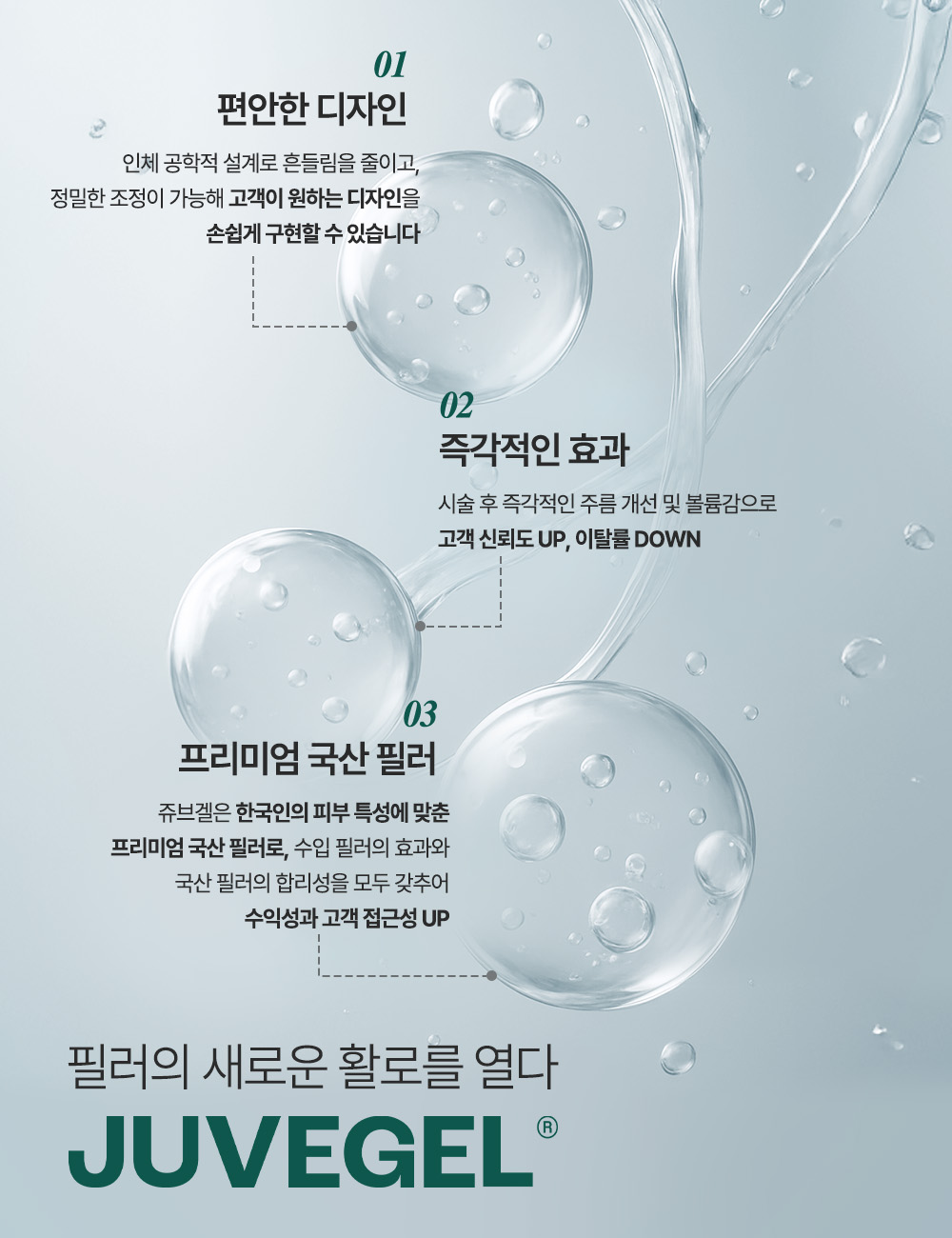 쥬브겔은 단지 내용물뿐 아니라, 시술자 중심의 디자인까지 고려하여 만들어졌습니다.