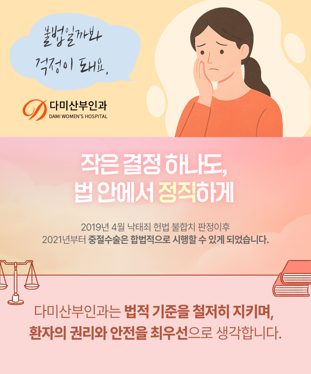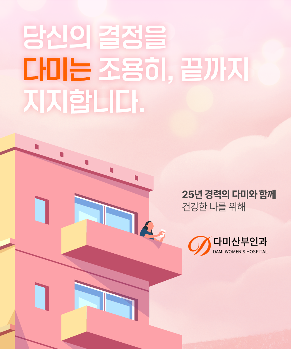 당일중절수술은 물론, 안전과 환자분의 마음까지 헤아리는 다미산부인과를 믿고 찾아주세요.