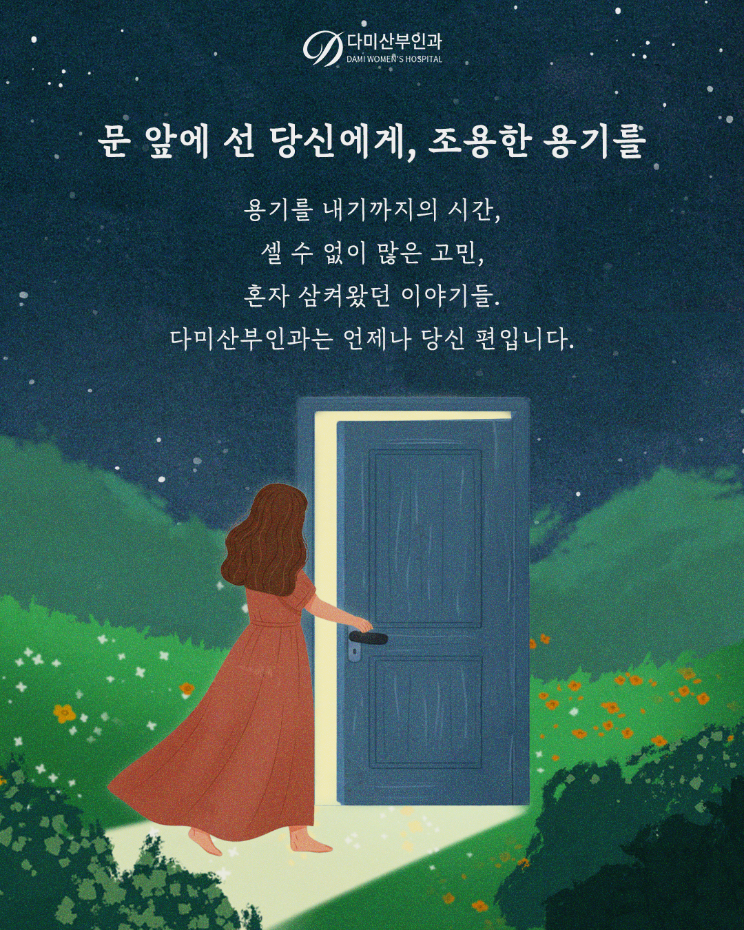 수없이 많은 눈물의 밤과 뼈를 깎는 고민의 시간을 지나 마침내 아주 작은 용기 한 줌을 쥐어짜 내어 저희 다미산부인과의 문을 조심스럽게 두드려주신다면 환자분이 내어주신 그 작고 소중한 용기가 결코 헛되지 않도록 용기가 내일의 흔들림 없는 평안과 온전한 안심으로 이어질 수 있도록 저희가 바로 옆에서 가장 든든하고 따뜻한 버팀목이 되어 여러분을 지켜드리겠습니다.