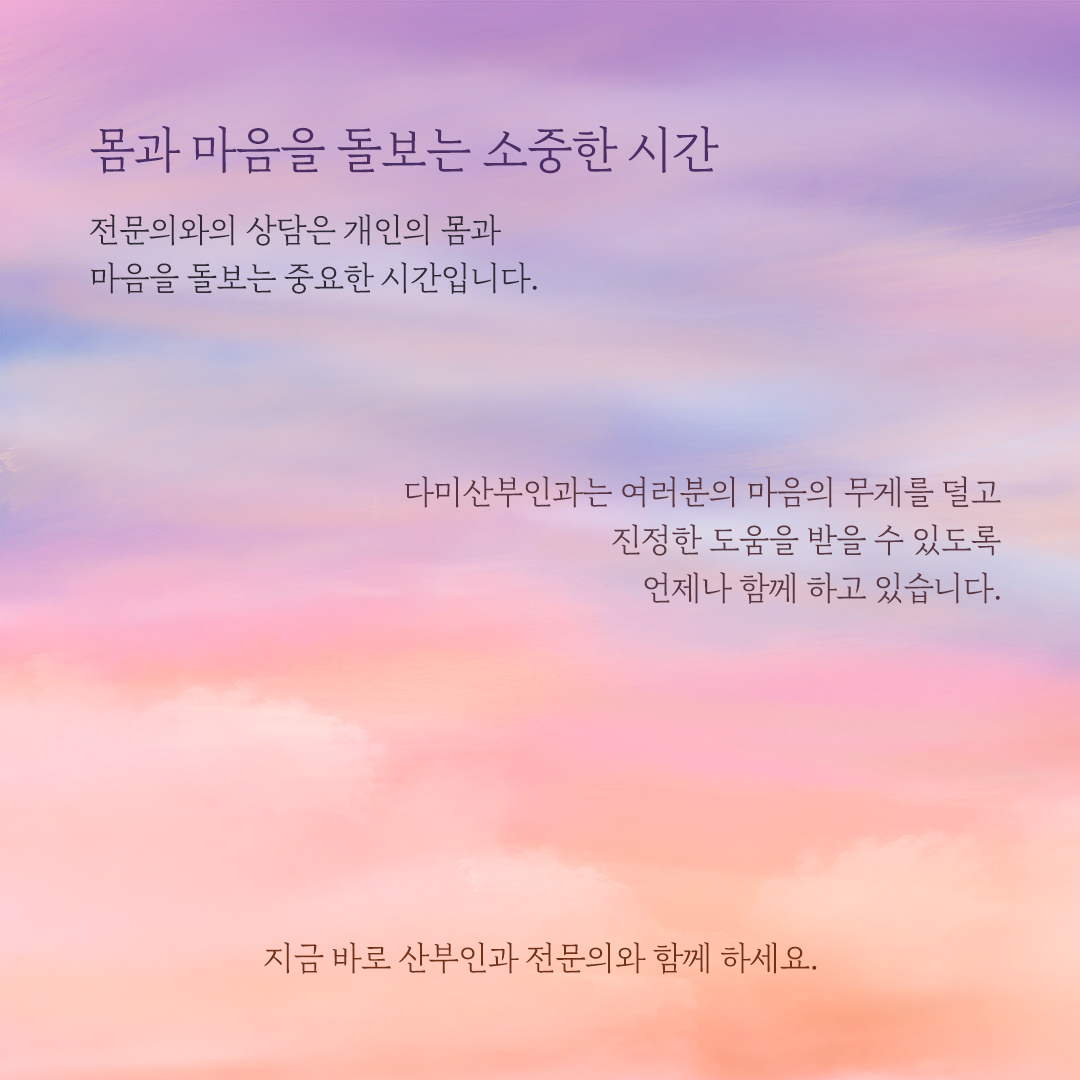 홀로 큰 고민을 안고 계신다면 다미산부인과를 찾아오시기를 바랍니다.